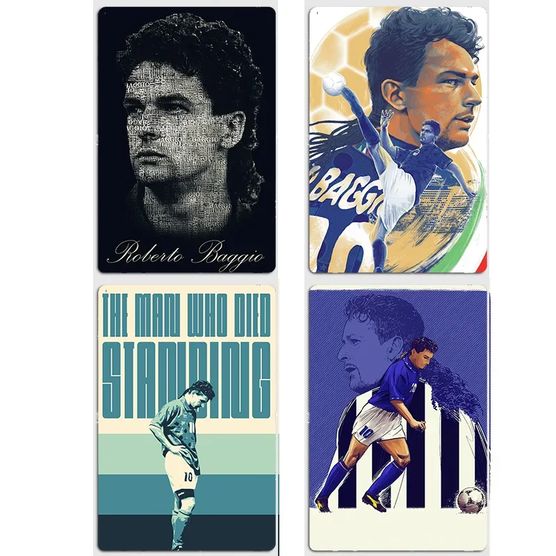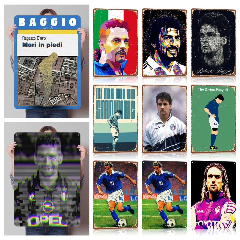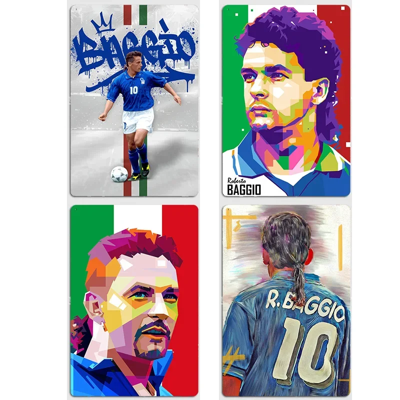 Roberto Baggio Poster in metallo Targhe personalizzabili Decorazione da parete Giocatore di calcio Targa in metallo per la decorazione della parete di casa Arte dei murales