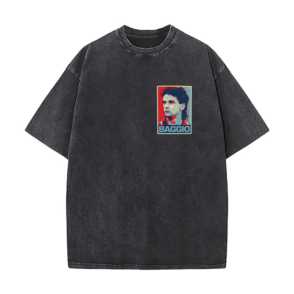 T-shirt retrò in cotone lavato con design a tema Roberto Baggio Pop T-shirt retrò moda uomo donna