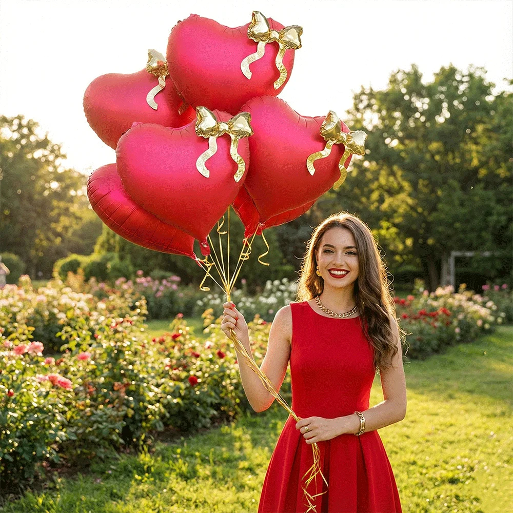 Palloncini foil a forma di cuore rosso da 22 pollici Fiocco dorato Decorazioni per matrimoni di San Valentino Forniture per feste di compleanno Globos a elio Regalo 1/2/5/10 pezzi