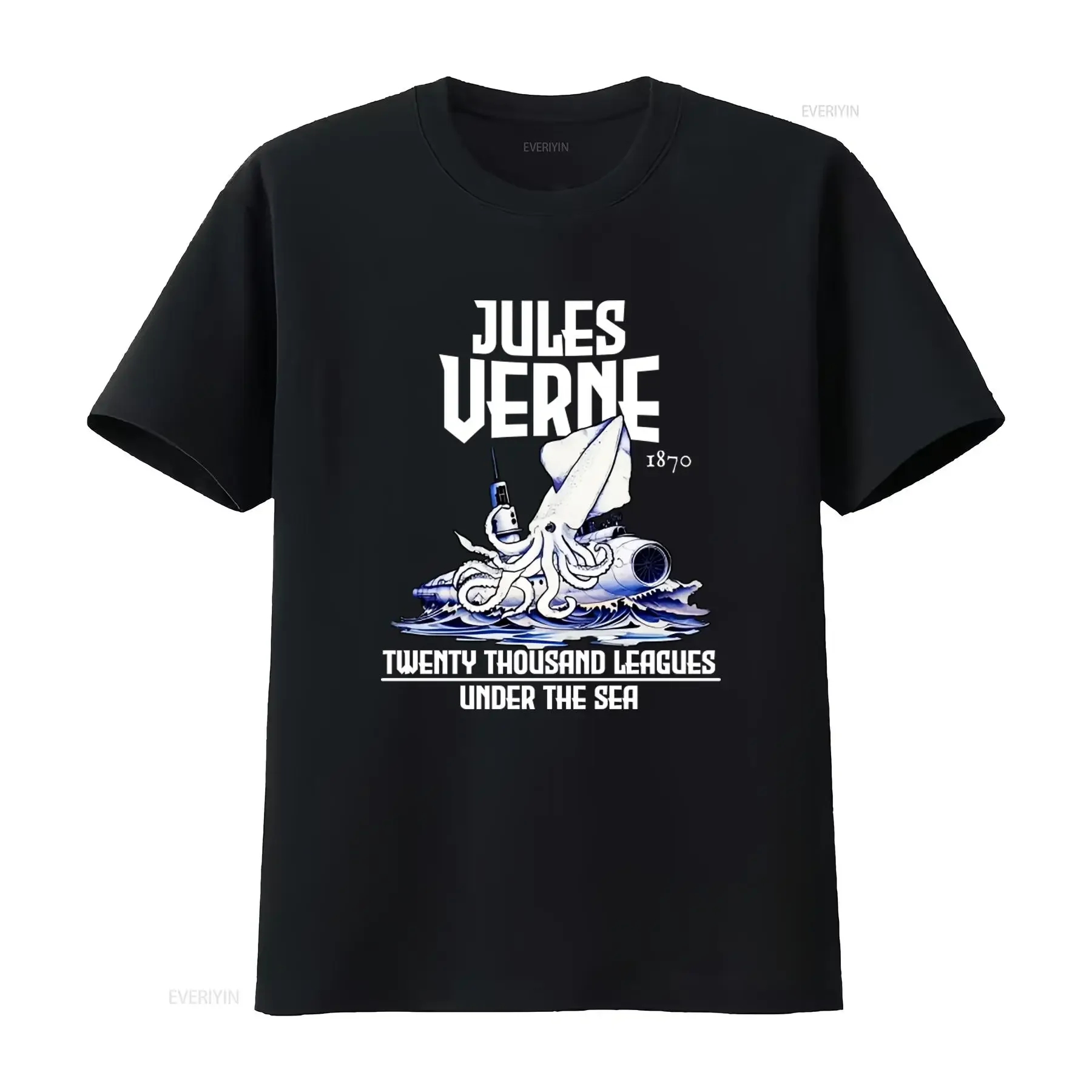 Maglietta Jules Verne 1870 Twenty Thousand Leagues Under the Sea dal design classico per gli amanti dell'avventura, grafica vintage effetto lavato