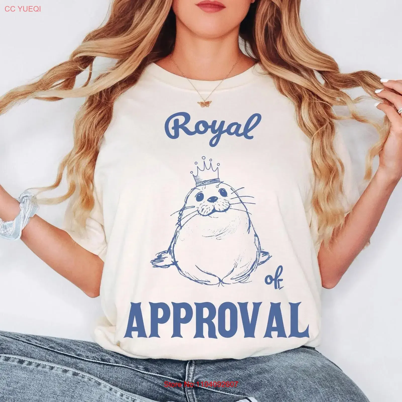 T-shirt con sigillo di approvazione Royal of Approval, simpatico e divertente gioco di parole con animali marini, grafica vintage lavata per amanti dell'oceano, leggermente unisex, da uomo