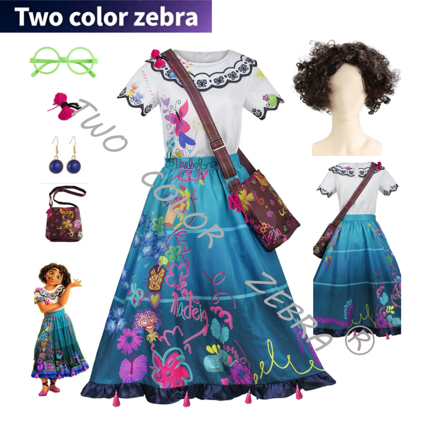 Costume cosplay per bambini Encanto Bruno Madrigal, set di costumi con parrucca elegante per compleanno, carnevale, alta qualità, festa di Halloween 2MN40