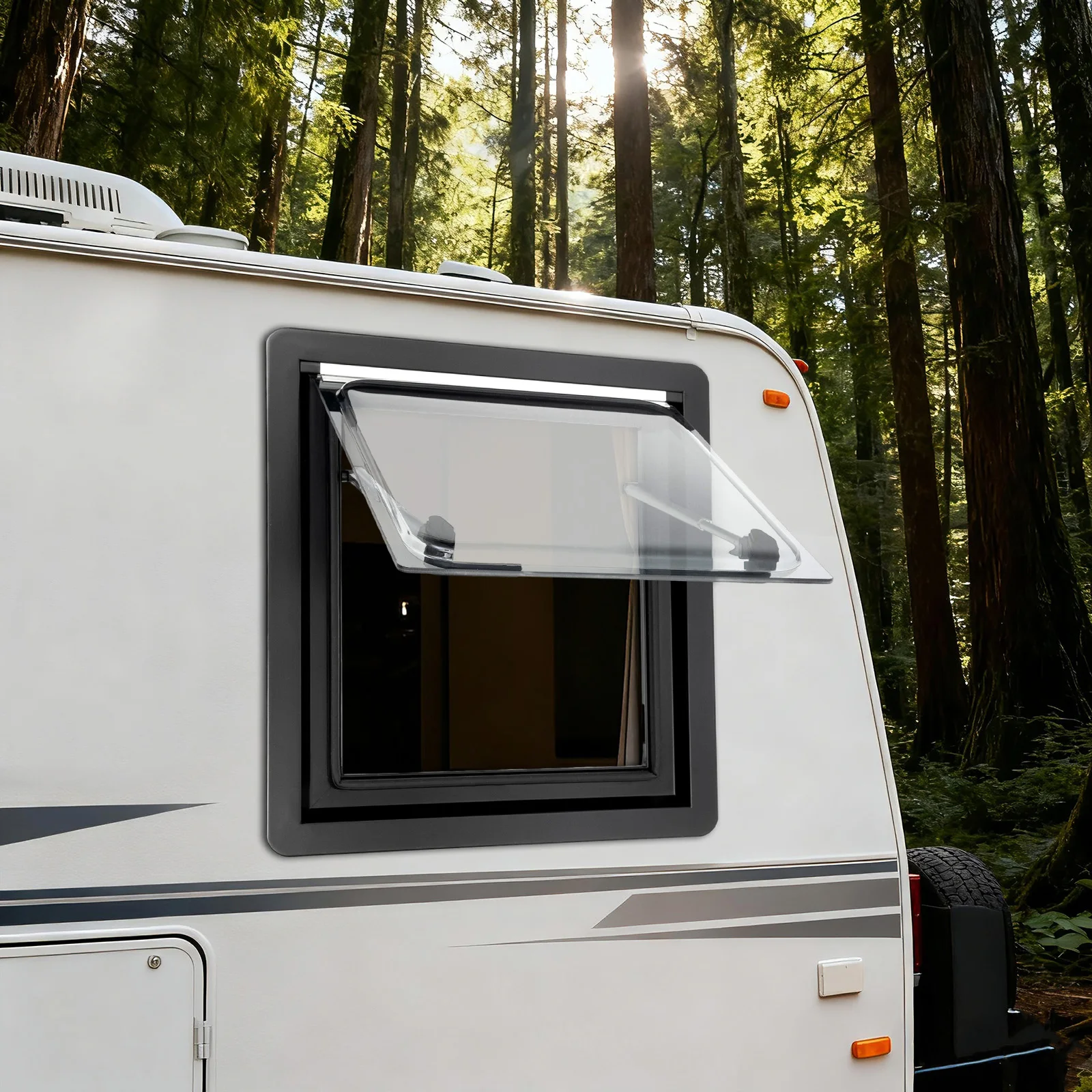 Finestra di ventilazione per roulotte RV 45x50 cm, 70 ° Finestra in lega di alluminio con angolo di apertura con guarnizione termica