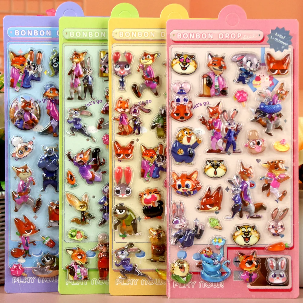 4 Lenzuola Disney Zootopia 3D Puffy Rilievo Adesivi Carino Judy Nick Anime Bubble Decalcomanie Del Computer Portatile Del Telefono Bagagli Diario Adesivo Giocattolo