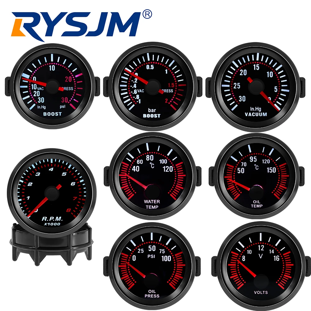 Manometro Digitale 2" 52mm per Auto: Temperatura Acqua, Temperatura Olio, Pressione Olio, RPM, Tachimetro, Voltaggio, Vuoto per Auto 12V con Lente Fumé