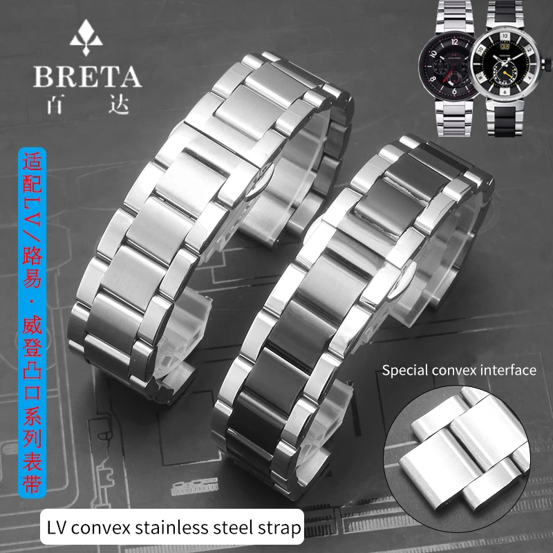 Cinturino convesso in acciaio inossidabile massiccio da 20x12 mm per LV TAMBOUR LOUIS-VUITTO-N Sostituisci braccialetti Bracciale con chiusura a farfalla