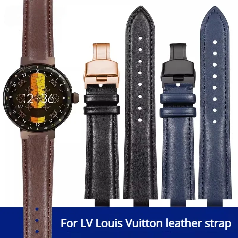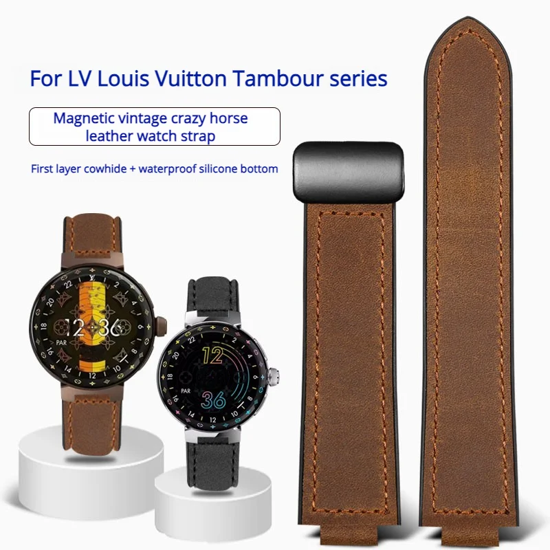 21x12mm cinturino inferiore in silicone retrò in pelle bovina per LV Louis Vuitton Smart Watch cinturino in pelle tamburello cinturino con fibbia magnetica