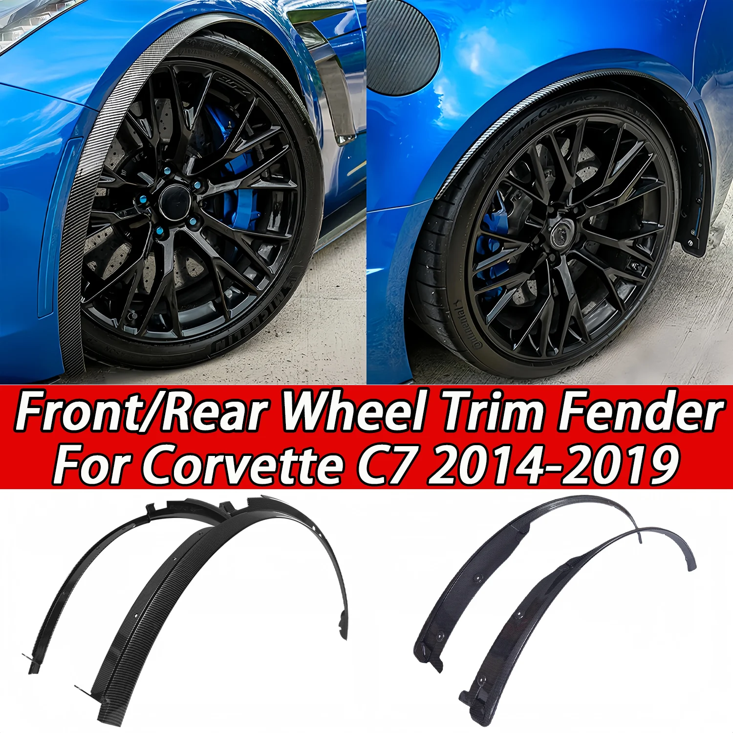 Per Corvette C7 2014-2019 Fibra di carbonio Look Nero lucido Archi parafango anteriore e posteriore Ruota Trim Parafango Archi Stampaggio Flares