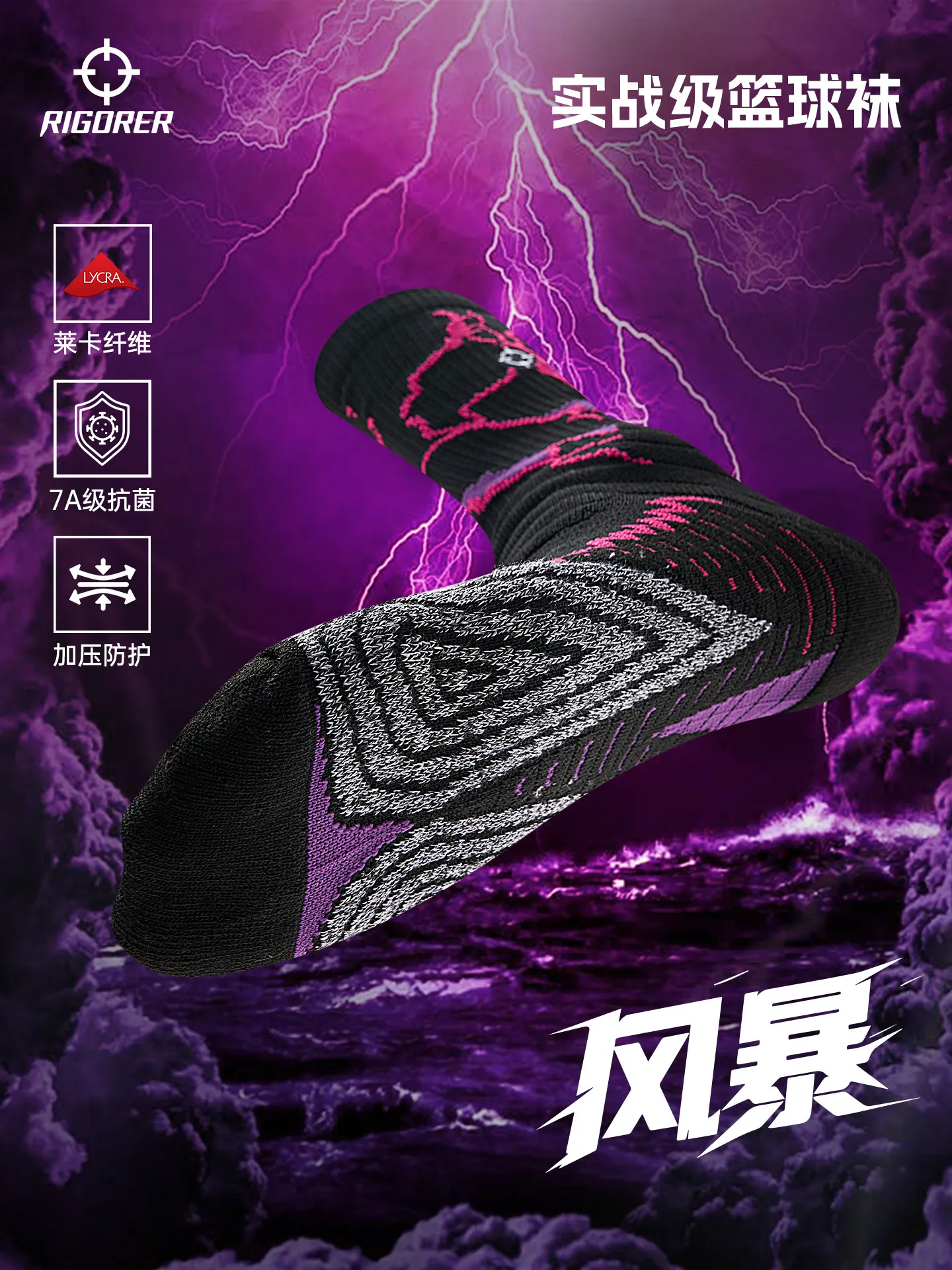 Calzini da basket RIGORER da uomo, 3 pezzi - Calzini in spugna americana, pronti per il gioco, antiscivolo, resistenti all'usura, modello Elite Long Crew