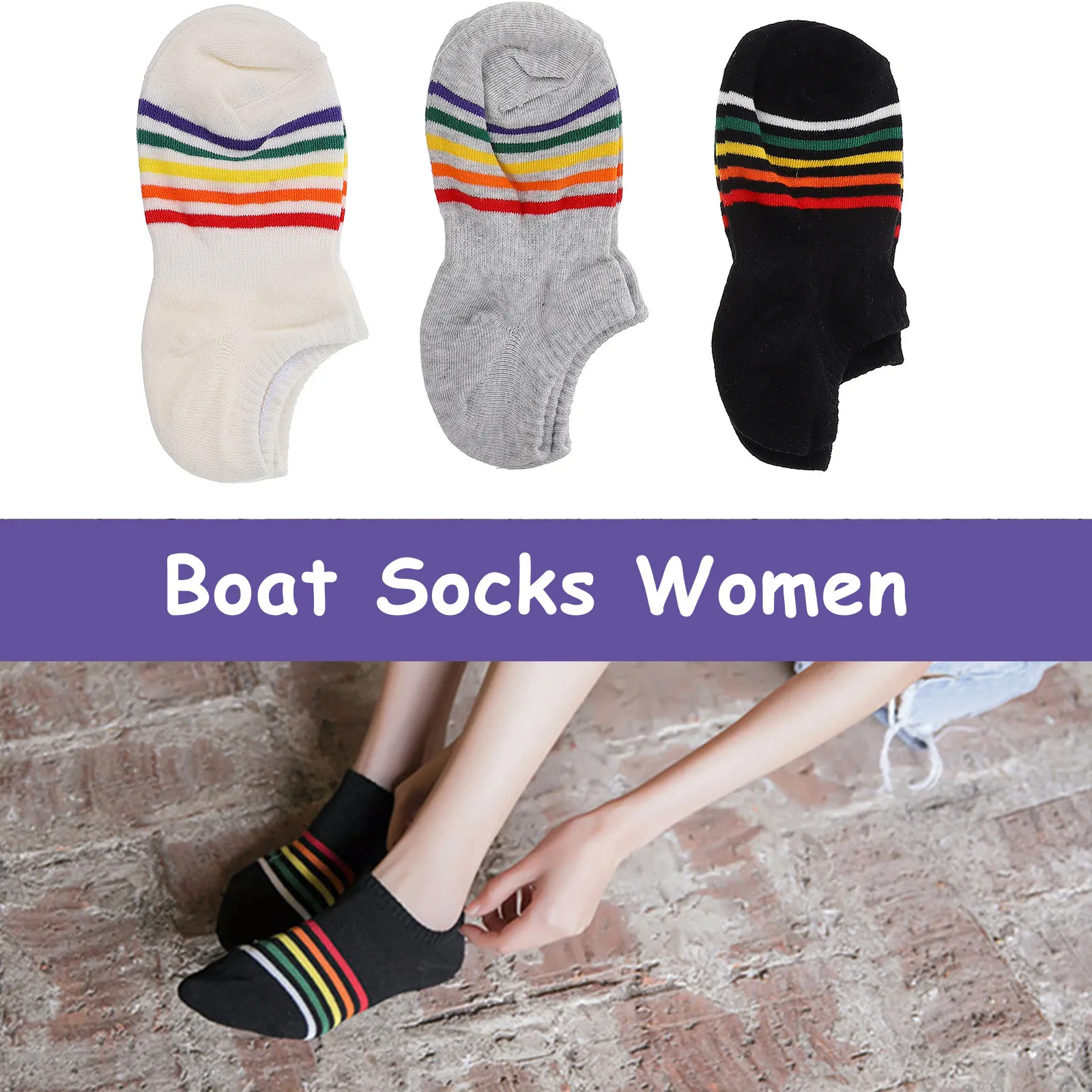 3 paia di calzini da donna a righe, calzini invisibili alla caviglia, sportivi, senza cuciture, traspiranti e che assorbono il sudore