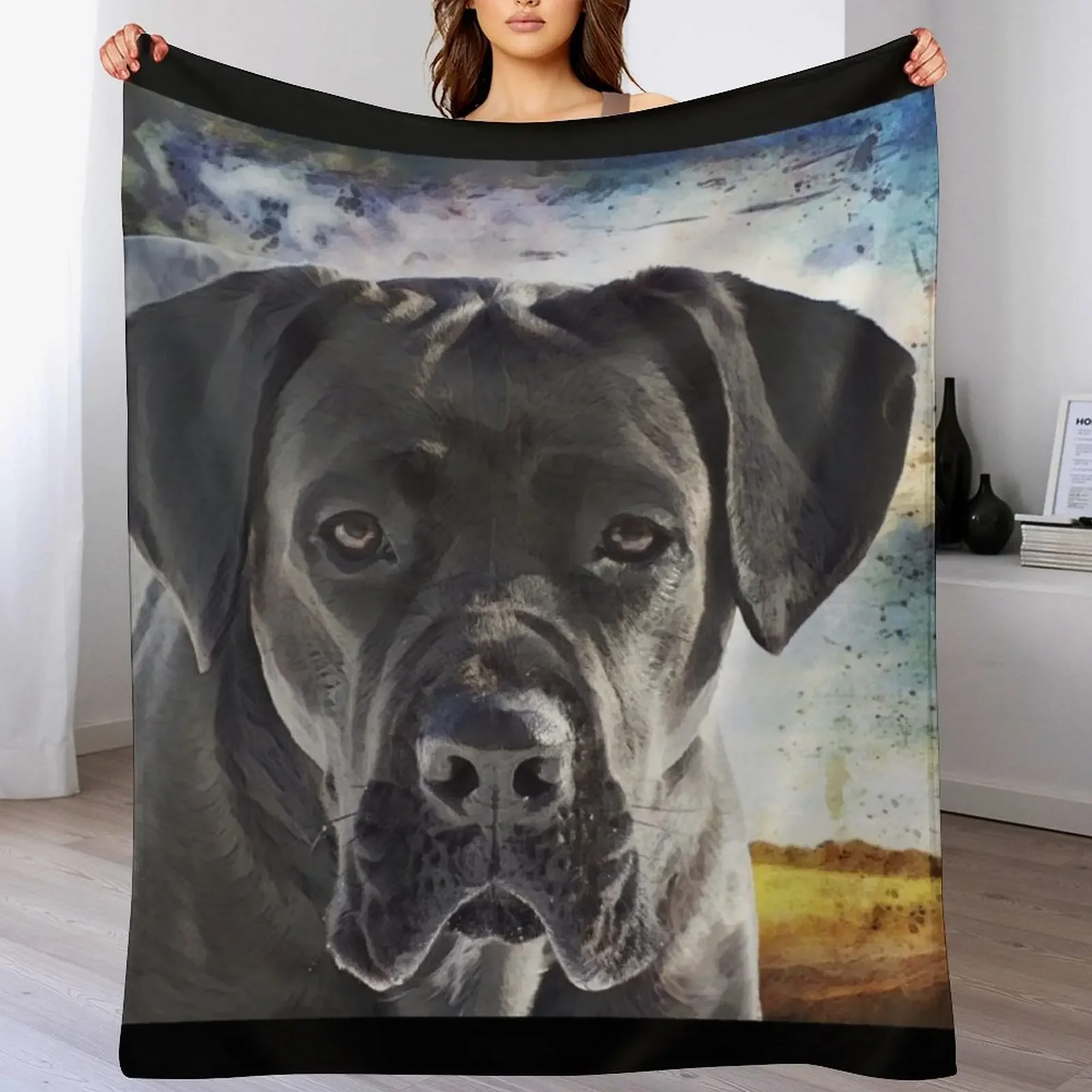 Coperta in Peluche con Ritratto ad Acquerello di Cane Corso Nero, Plaid Estivo di Lusso