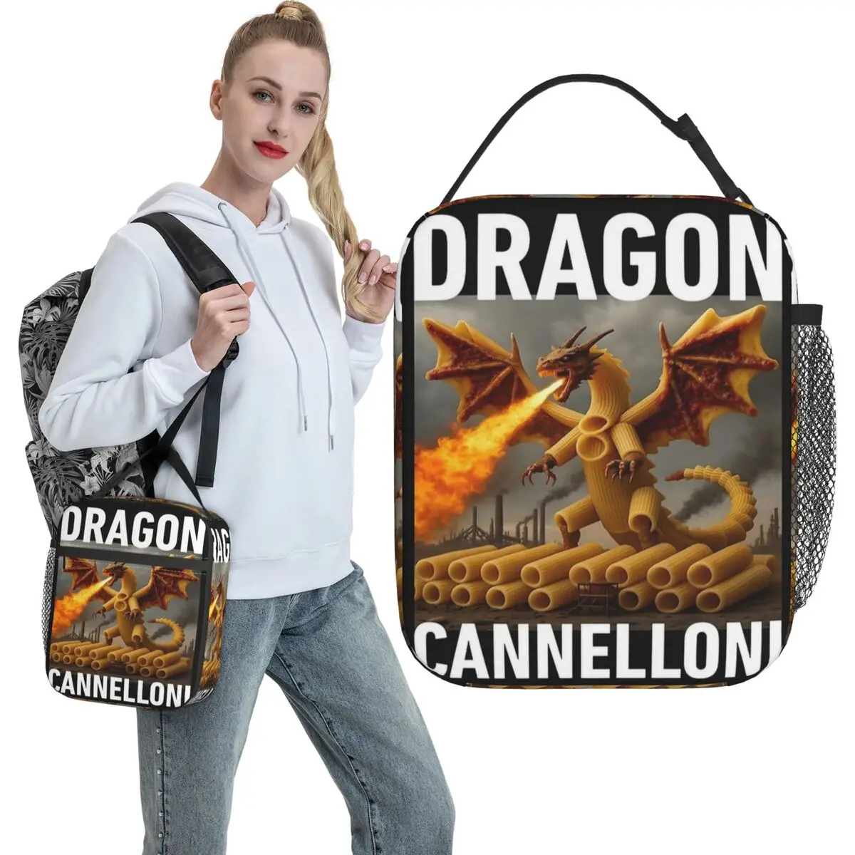 Borsa Termica Porta Pranzo Divertente Dragon Cannelloni Dragoni Italian Brainrot Meme, Borsa Porta Pranzo Scolastica Portatile, Borsa Frigo per Donne