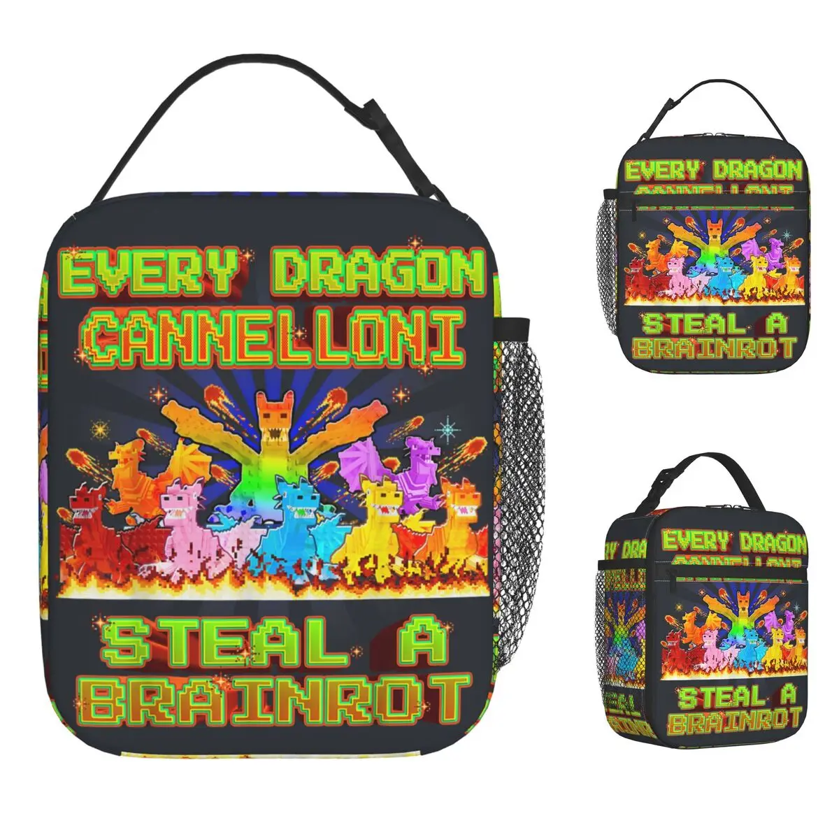 Ogni borsa per il pranzo Dragon Cannelloni Brainrot Borsa per il pranzo portatile con cerniera Borse per il pranzo con borsa termica da viaggio per donna