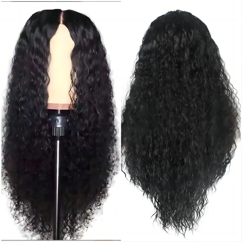 Parrucche Europee e Americane da Donna, Capelli Ricci Lunghi Afro con Piccoli Riccioli, Realizzate a Macchina, Semi-Lavorate a Mano, con Frontale in Pizzo, Capelli Sintetici