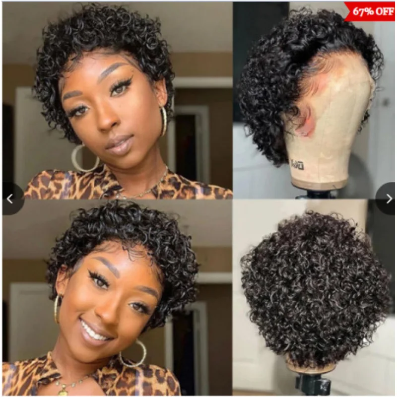BeiSDWig Parrucche sintetiche per capelli corti vino rosso Acconciature ondulate nere Parrucca da donna con taglio pixie per afroamericano NM34
