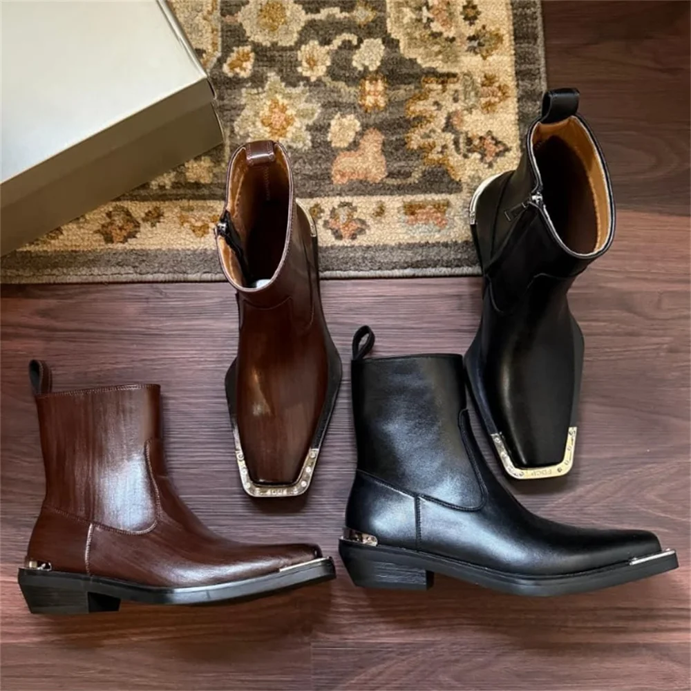 Stivaletti Chelsea Casual da Uomo con Tacco Alto, Punta Quadrata, Punta Rinforzata, Cerniera Laterale, Stile Britannico, Colore Unito