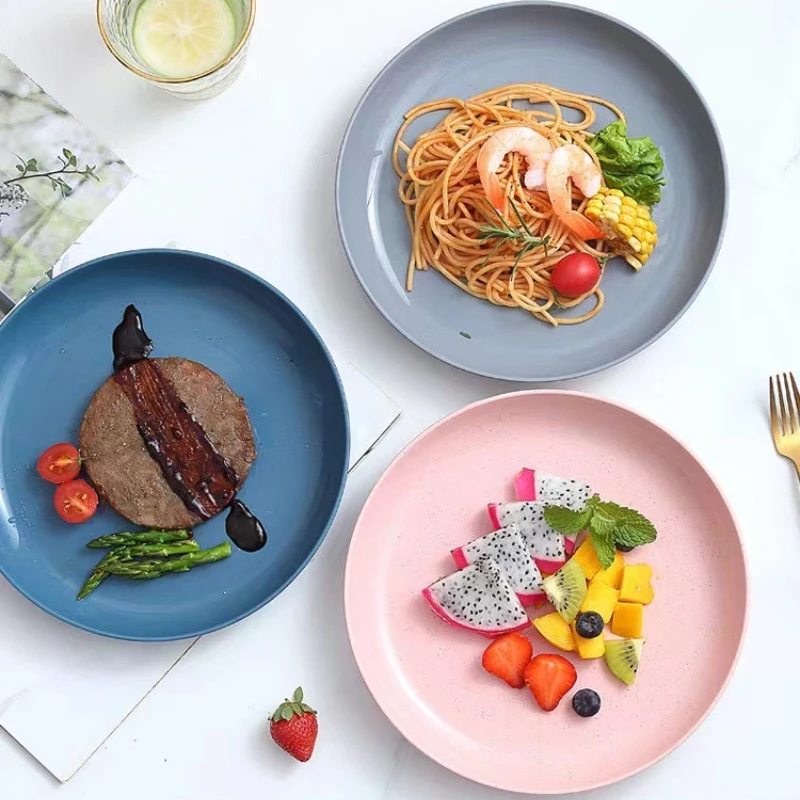 Piatti da Cena Nordici in Paglia di Grano da 23 cm, Rotondi, per Frutta e Snack, Leggeri e Riutilizzabili, Stoviglie in Plastica per Cucina