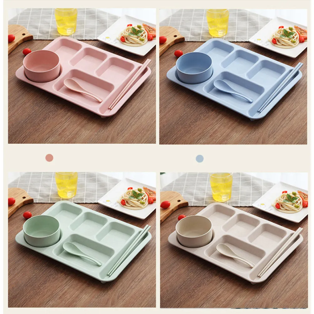 Vassoio da pranzo per ristorante in paglia di grano Piatto diviso Vassoio da pranzo per la casa Vassoio da pranzo per adulti Fast Food School Hotel Grande capacità Cinque griglie