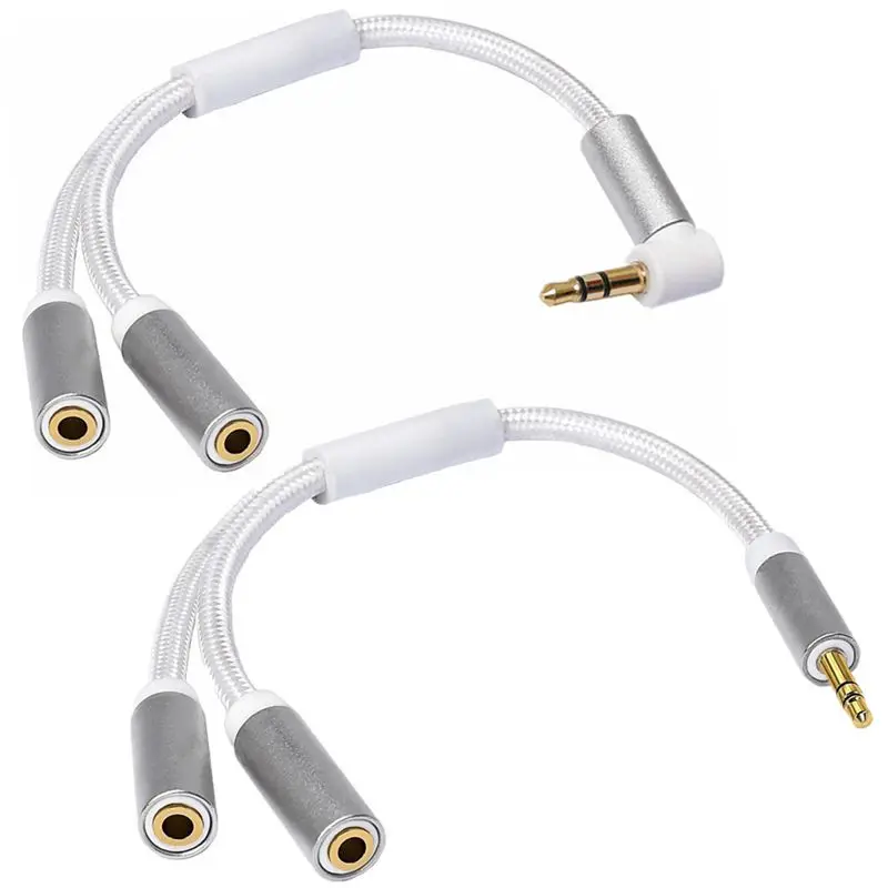 Cavo Audio Stereo Y-Splitter 1/2 con Connettori DC3.5mm a 3 Poli, Un Maschio e Due Femmine, Rivestimento in Metallo Placcato Oro e Rete in Cotone