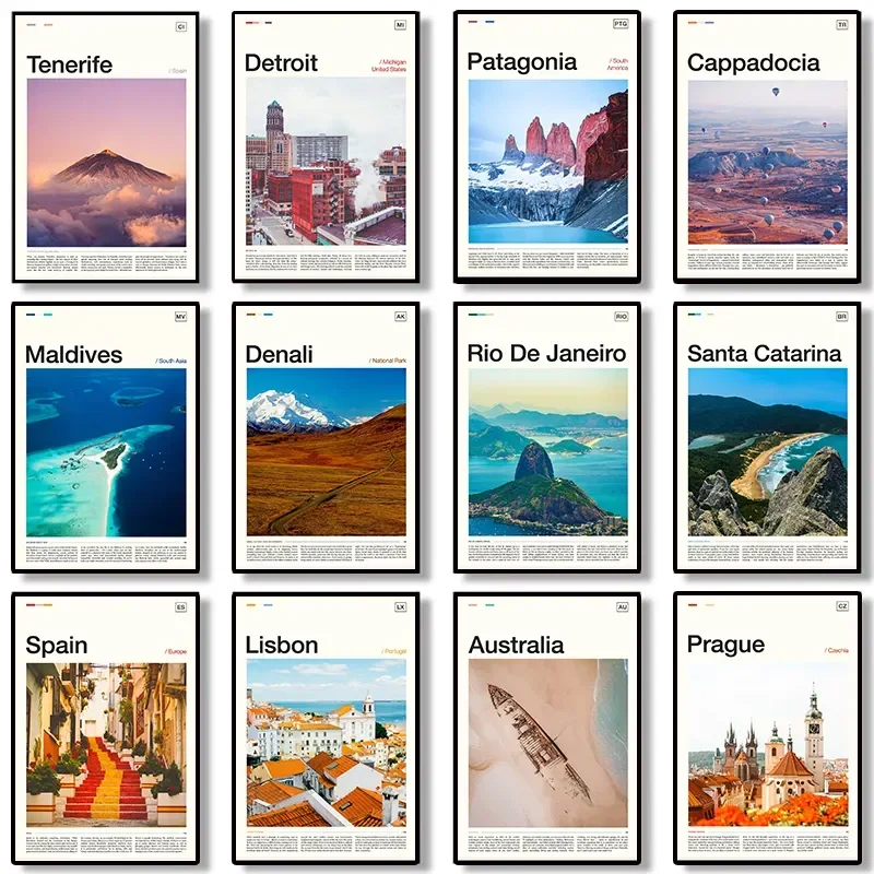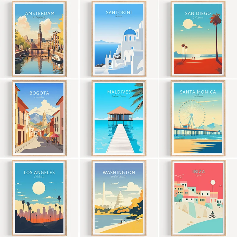 Modern Travel Cities Santorini Roma Crete Parigi Londra Art Poster Stampe su tela Wall Art Painting per la casa Soggiorno Decor