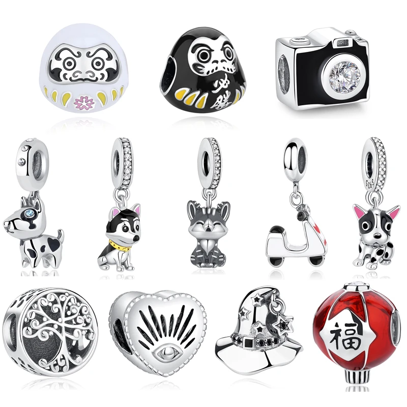 Originale 925 Sterling Silver Nero Pendenti E Ciondoli Perline Pet Daruma Pavimenta CZ Fit Pan Bracciali Braccialetti Collane Per Le Donne Gioielli FAI DA TE