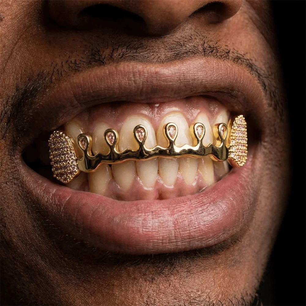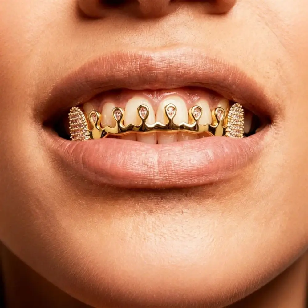 Grillz Dentali Hip Hop alla Moda con Strass Lucidi Doppi, Coperture Dentali Classiche Semplici e Affascinanti, Corona Dentale