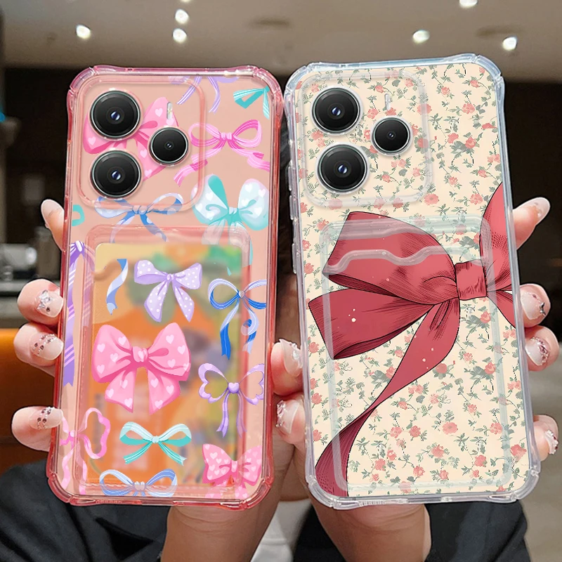 Custodia Trasparente con Tasca Porta Carte per Xiaomi Poco X7 X6 Poco X6 Pro M6 Pro 4G, Cover Morbida Antiurto in TPU con Stampa Fiocco Colorato