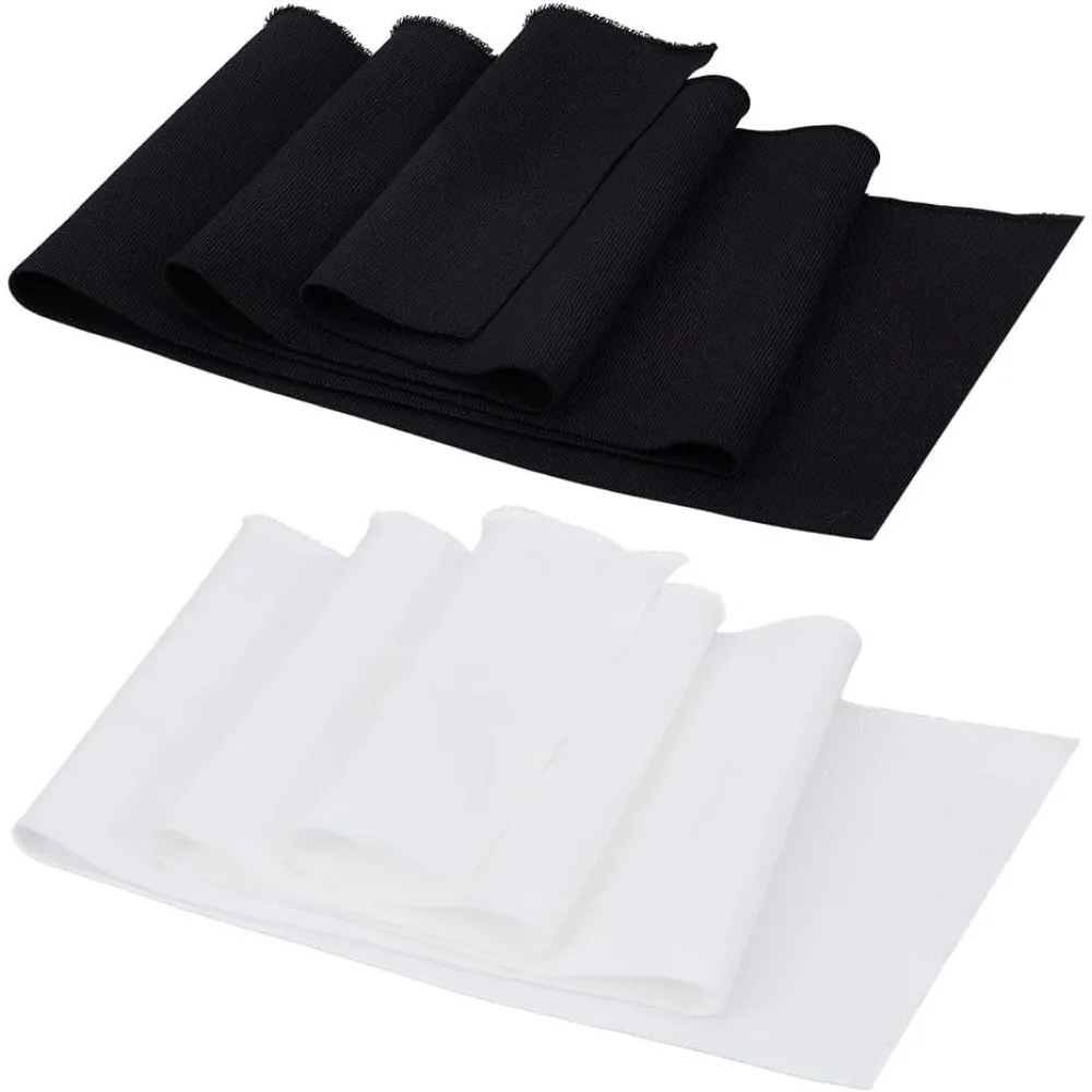 2 Pezzi 2 Colori Nero Bianco Tessuto a Costine Elasticizzato 100x15 cm Materiale Elastico per Fascia Elastica
