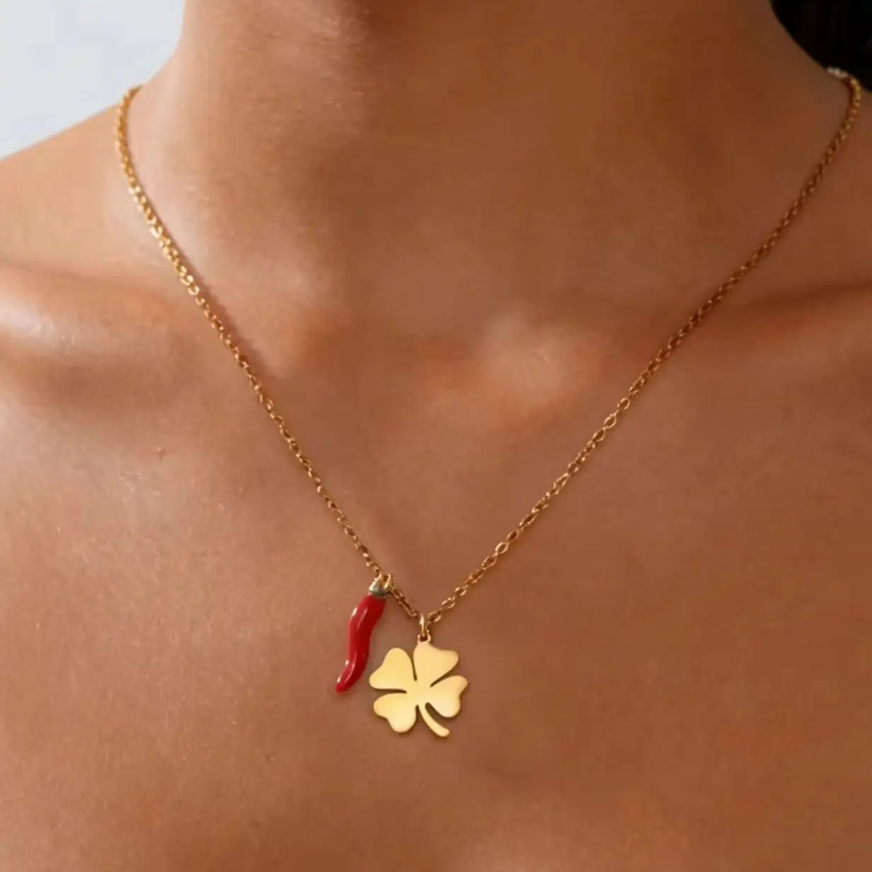 Collana con Ciondolo a Forma di Foglia di Trifoglio Portafortuna in Stile Italiano per Donne, Catena con Charm in Acciaio Inossidabile, Amuleto Talismano, Gioiello Regalo di Compleanno