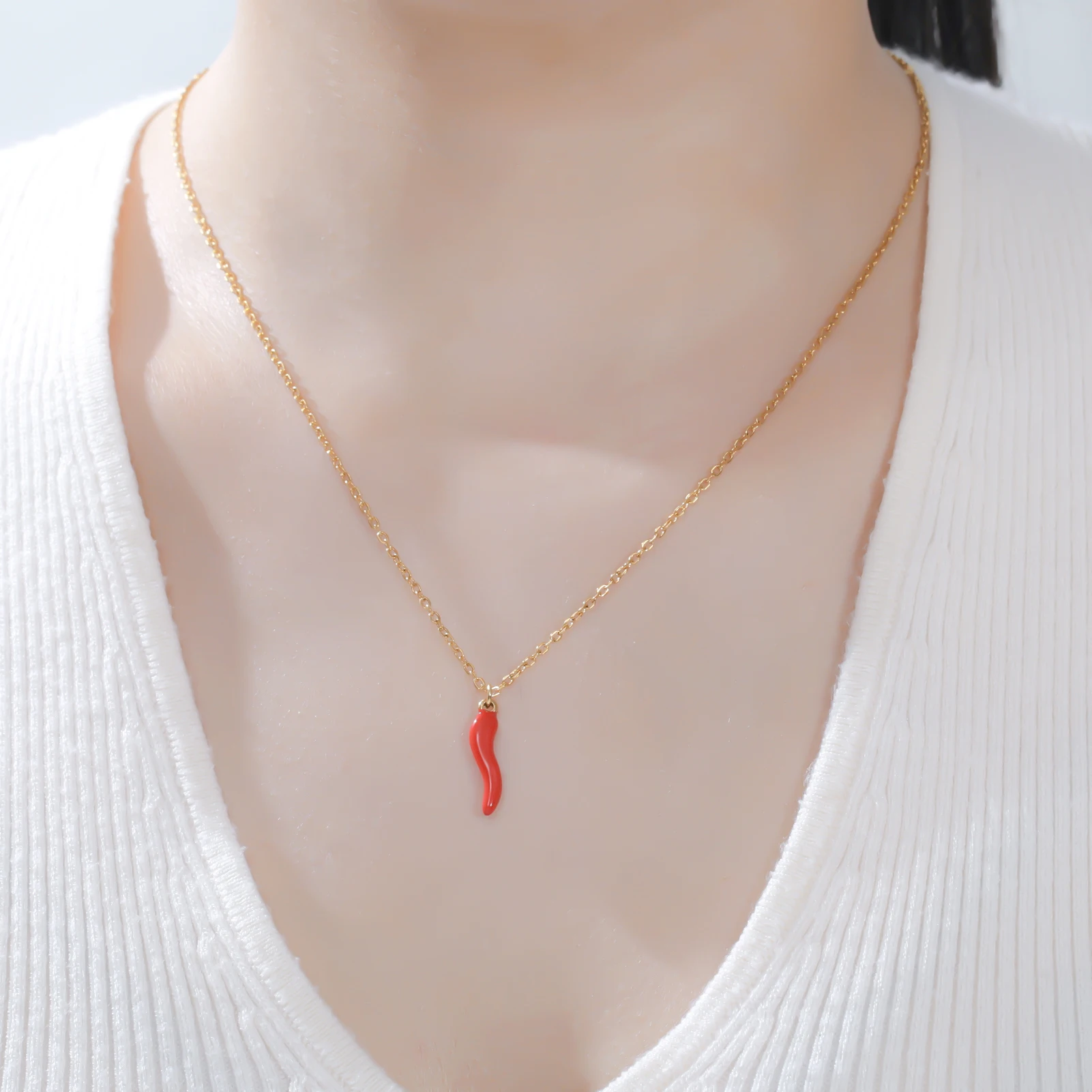 Unift Collane in corno italiano in acciaio inossidabile per uomo Donna Moda Collana con ciondolo in corno di peperoncino italiano Gioielli con amuleto fortunato