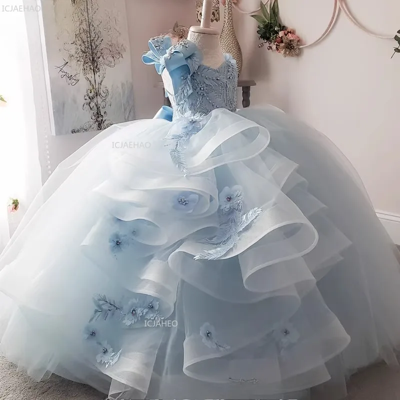 Abito da Principessa Lungo Azzurro per Bambine, Elegante Vestito da Sera per Feste, Banchetti, Cerimonie Formali, Spettacoli di Pianoforte
