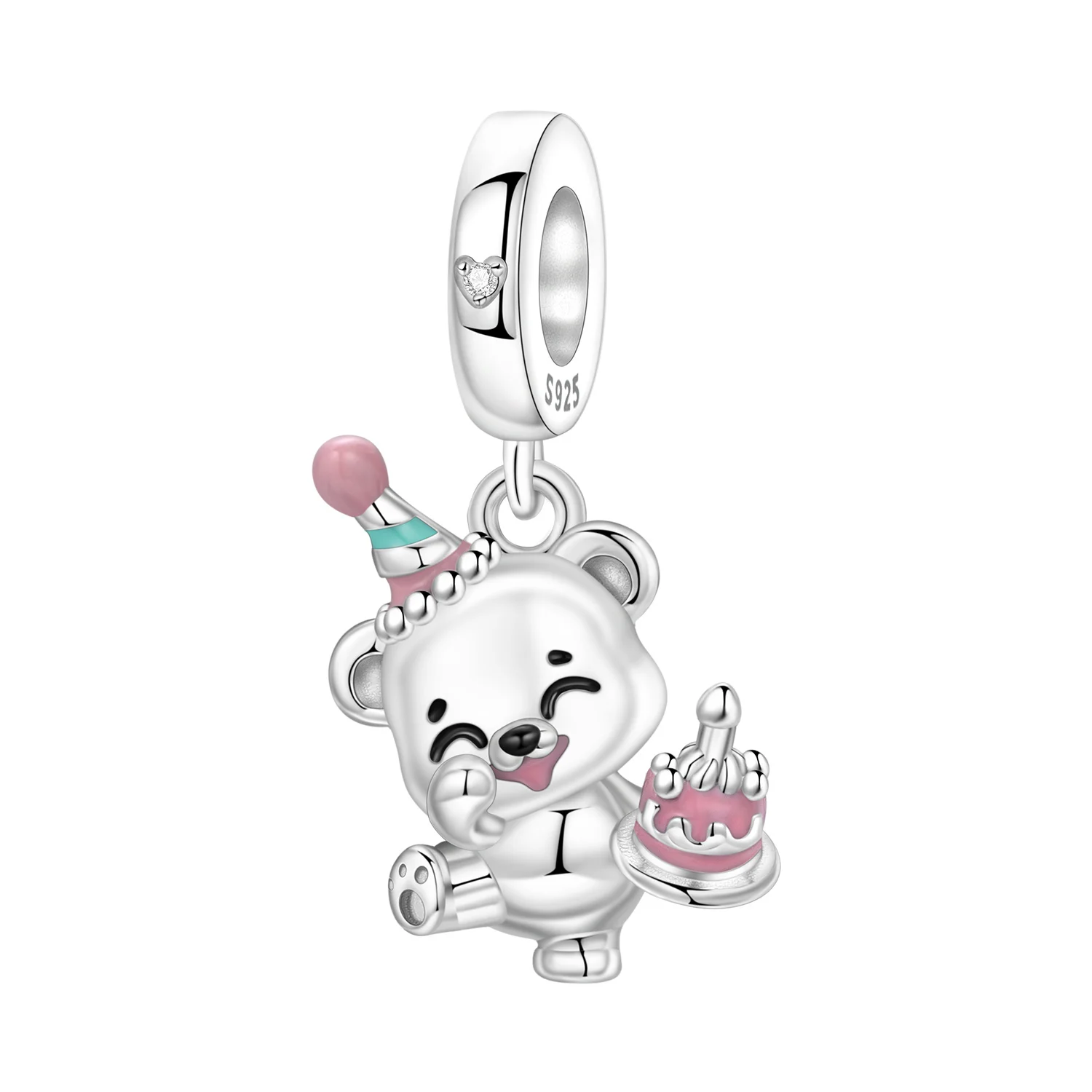 PANPOKI 925 Sterling Silver Cute Cake Compleanno Teddy Bear Perline Pendenti originali Gioielli con ciondoli Collana fai da te Bracciale Buone regalo