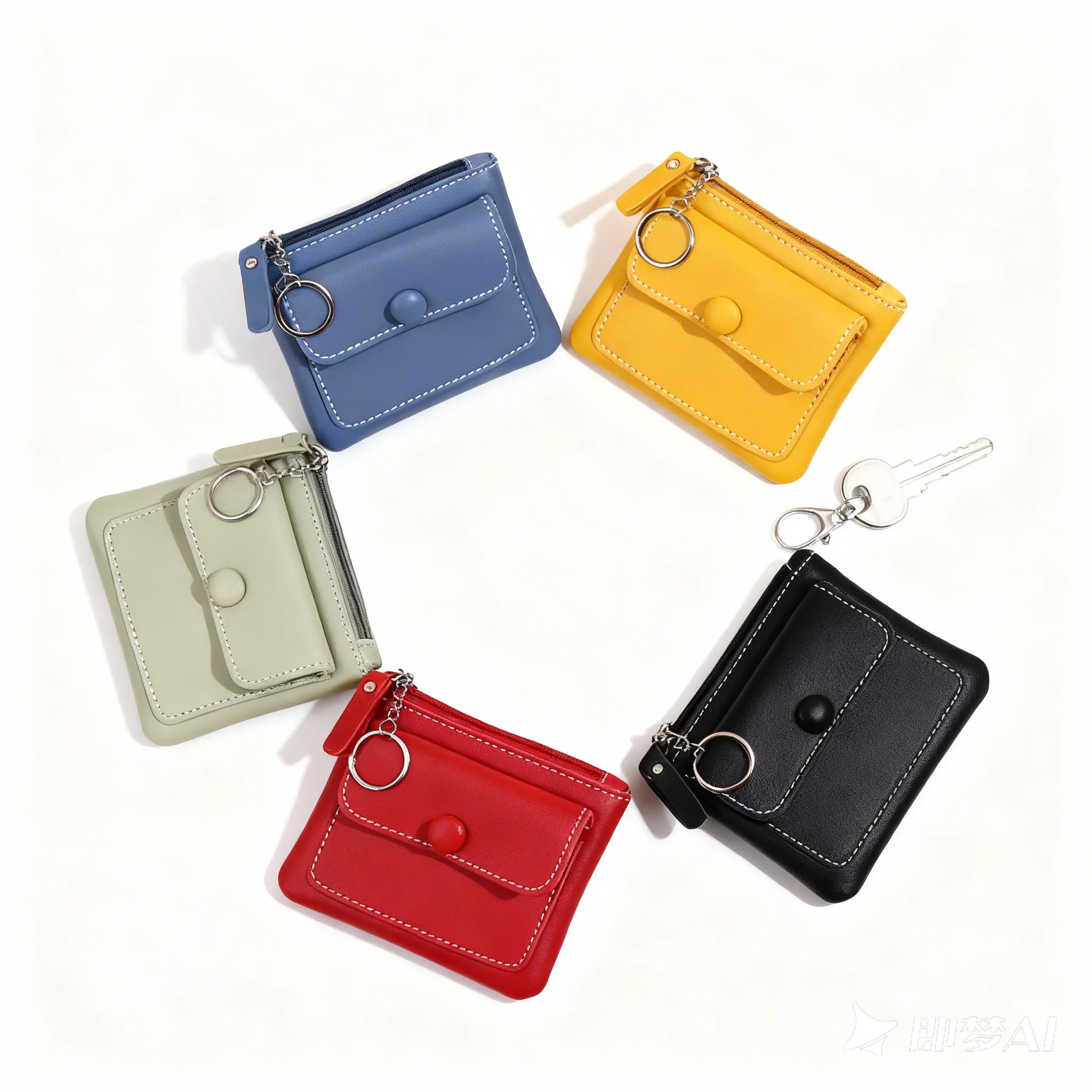 Portachiavi Creativo in Pelle PU con Portamonete e Portafoglio con Cerniera, Piccola Borsa per Monete per Donne, Uomini e Bambini, Mini Portachiavi Regalo