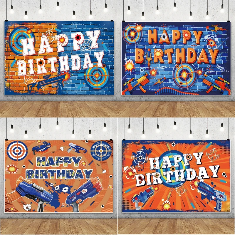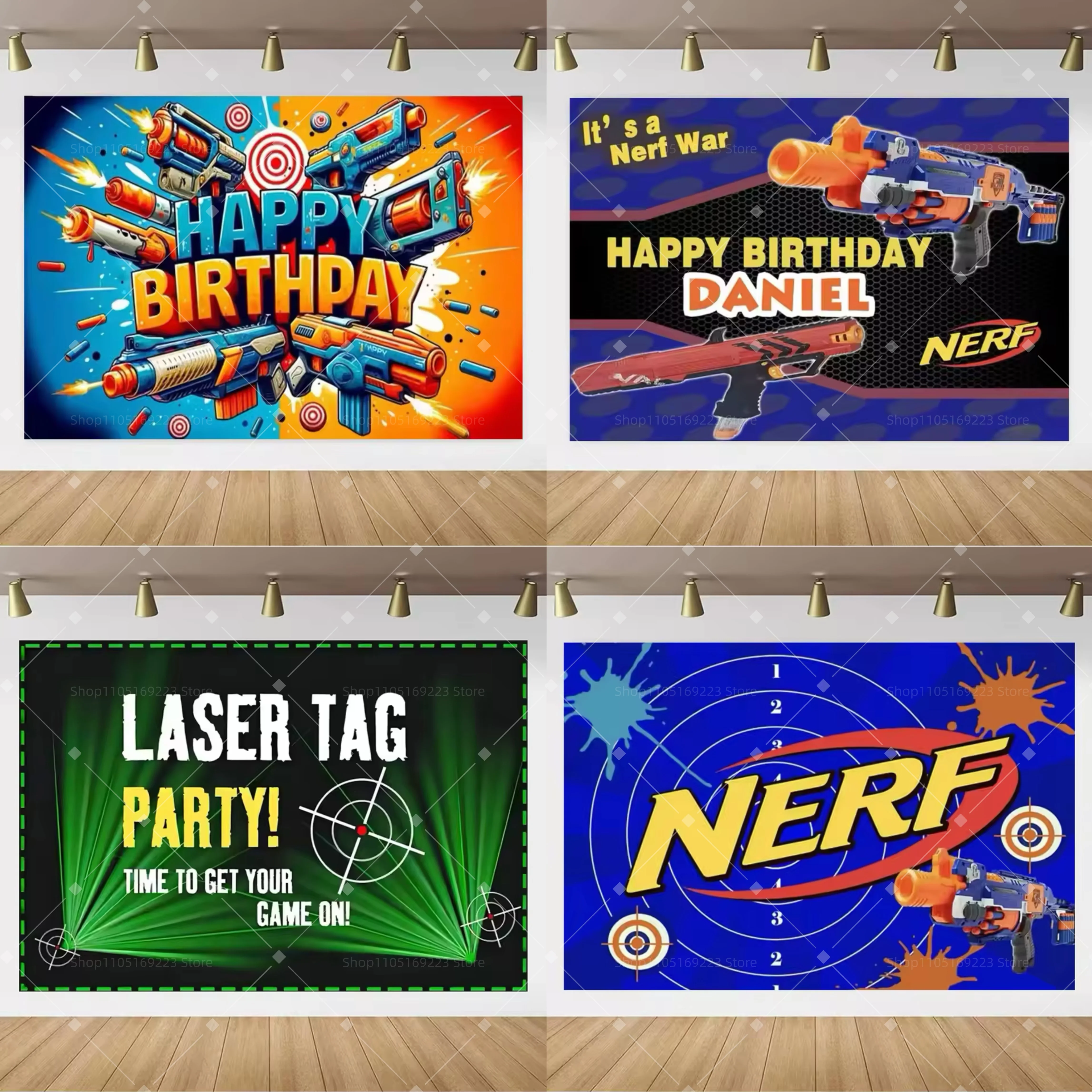 Nerf Gun Sfondi fotografici Ragazzi che sparano freccette Fondali fotografici di compleanno Decor Banner Poster Photo Booth Puntelli