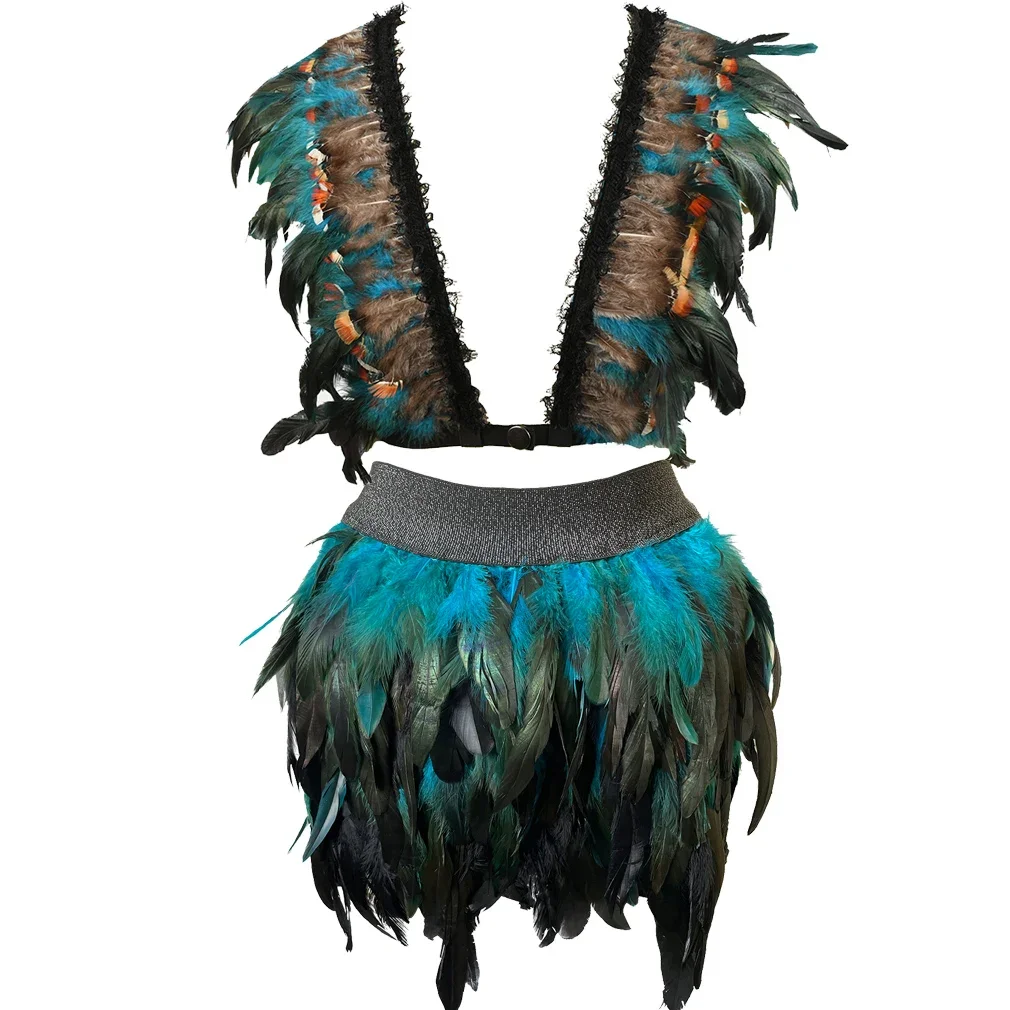 Gonna con spallina di piume da donna Lingerie sexy Imbracatura per il corpo Set reggiseno intimo Halloween Dance Rave Wear Goth Bondage Spalla Ala