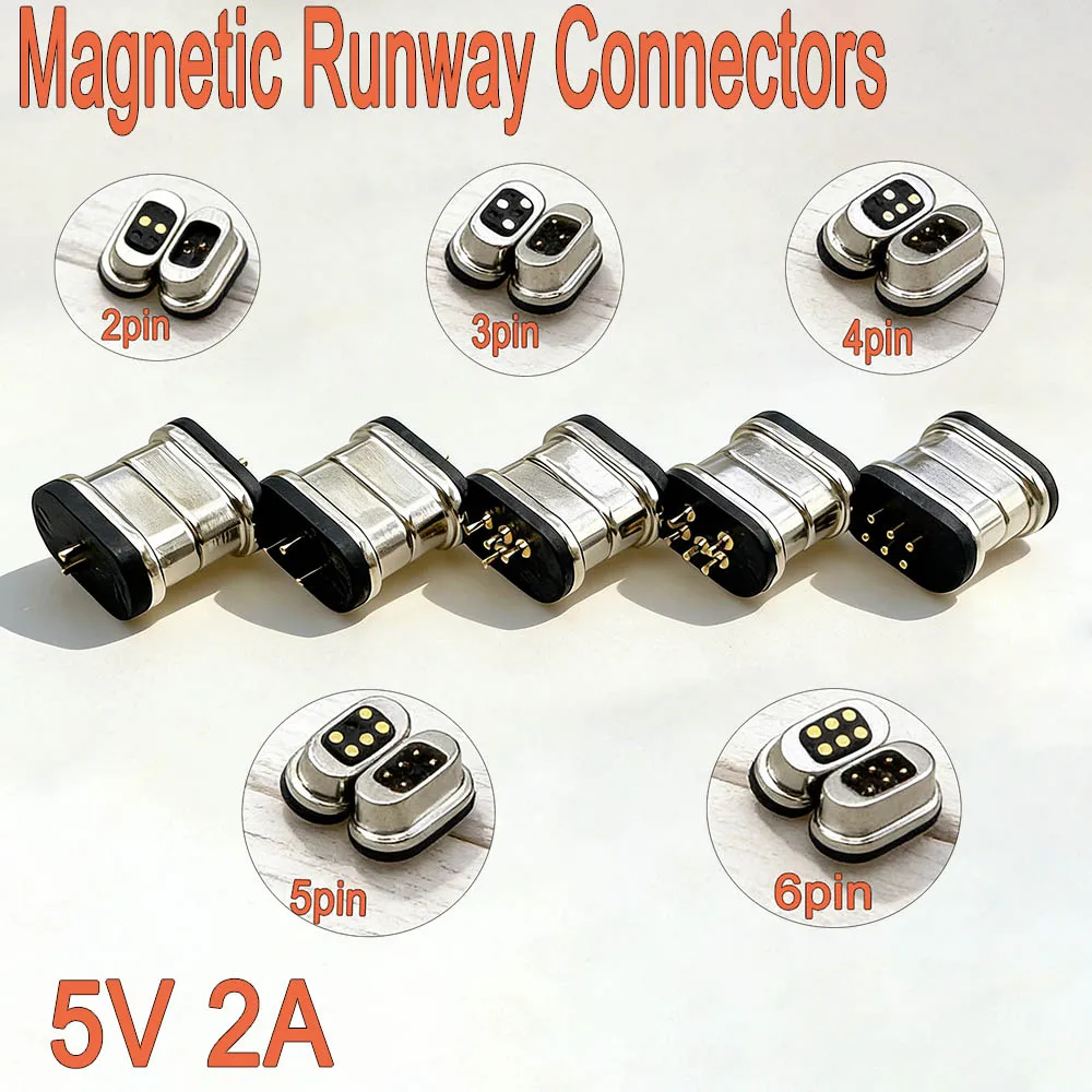 5/10 paia Connettore Magnetico Runway 2pin 3pin 4pin 5pin 6pin 5V 2A Passo 2.54MM Base Terminale Magnetica Pogopin per Segnale e Ricarica