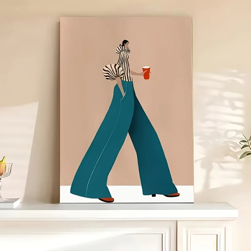 Pantaloni blu alla moda Donna Poster Stampe Pittura su tela astratta moderna surreale Immagine di arte della parete per la decorazione della casa del soggiorno