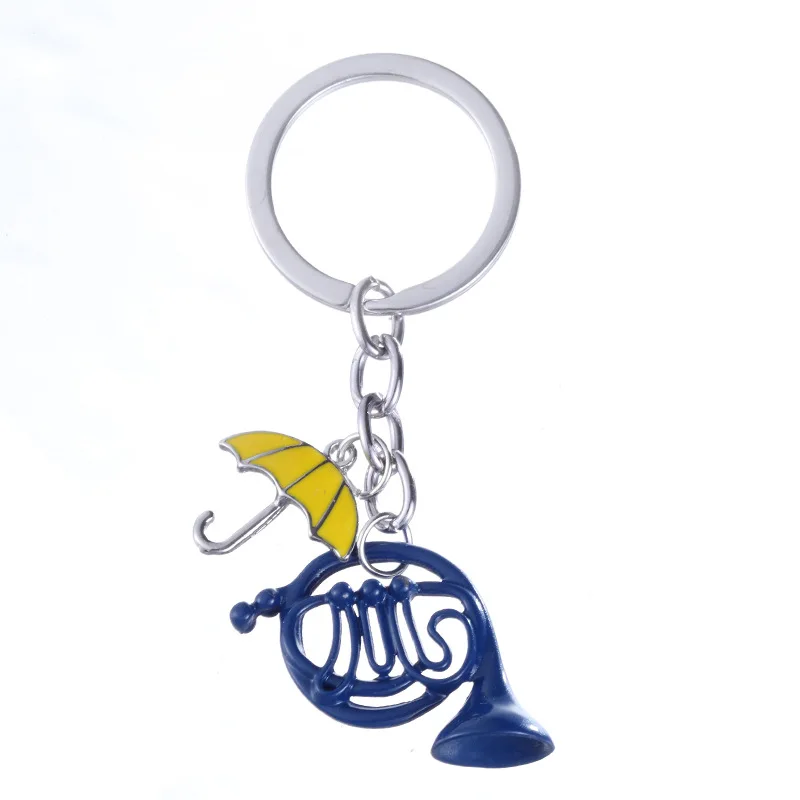 Portachiavi HIMYM How I Met Your Mother con Ciondolo Ombrello Giallo e Corno Francese Blu, Regalo per Mamma e Papà, Gioiello per Festival