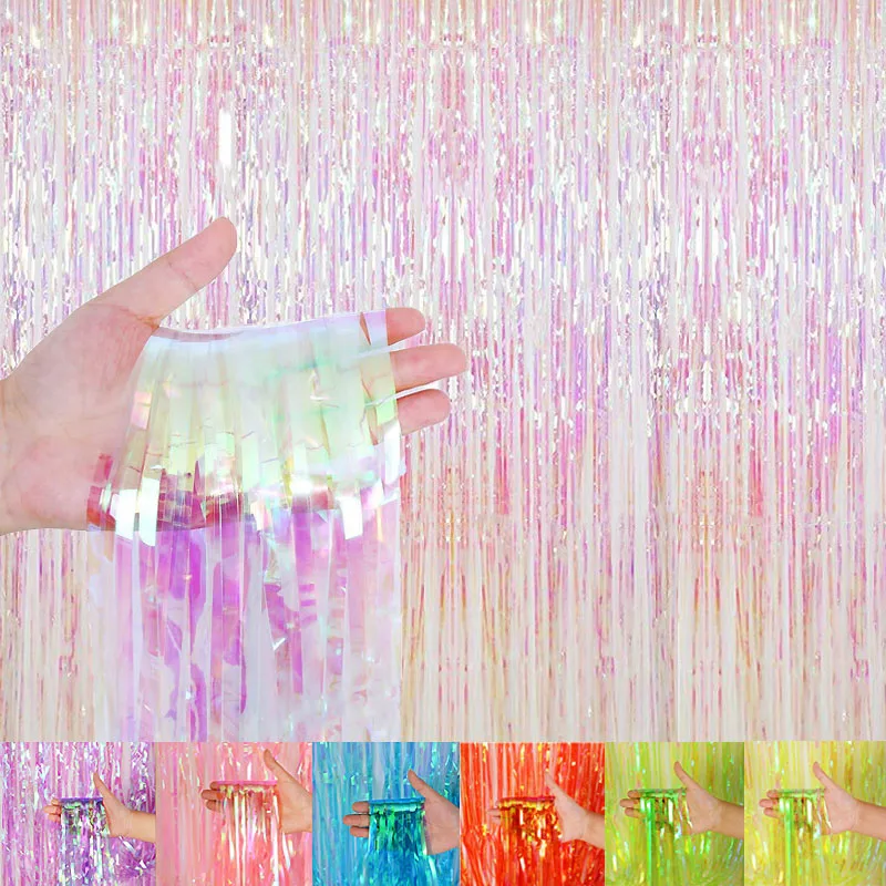Tenda a Frange Glitterata da 2M, Tenda Trasparente Iridescente in Lamina, Splendido Sfondo per Feste, Decorazioni per Matrimoni e Compleanni