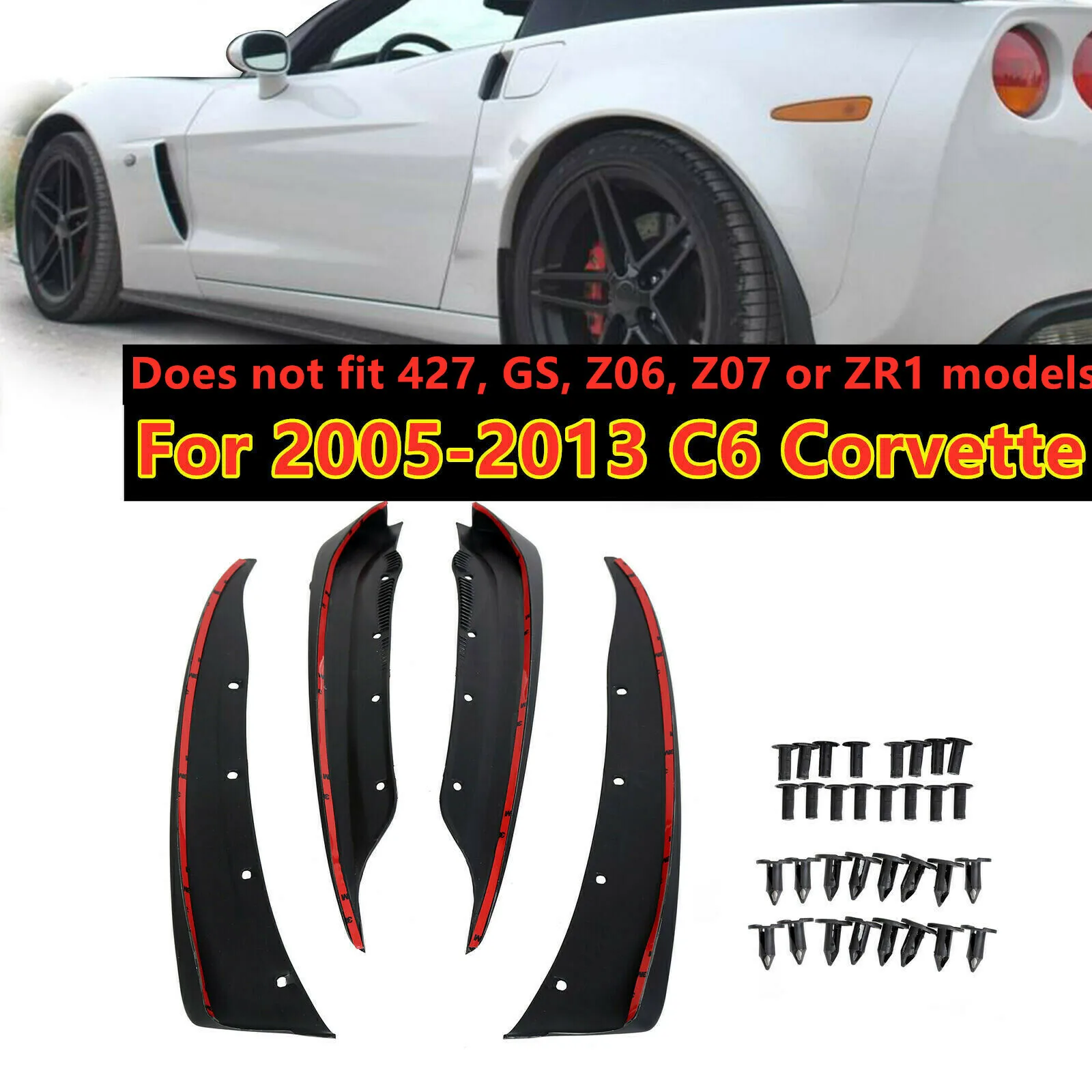 4 pezzi paraspruzzi parafanghi anteriori posteriori parafanghi per 2005-2013 C6 Corvette