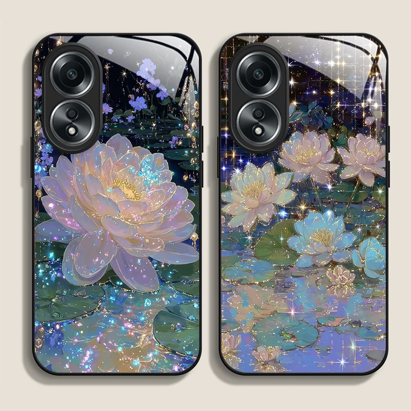 Custodia per telefono in vetro temperato con motivo floreale di loto di lusso per OPPO Realme 13 Pro Plus 12 11 10 C33 C63 X7 Max GT Neo 2 3 5G Cover