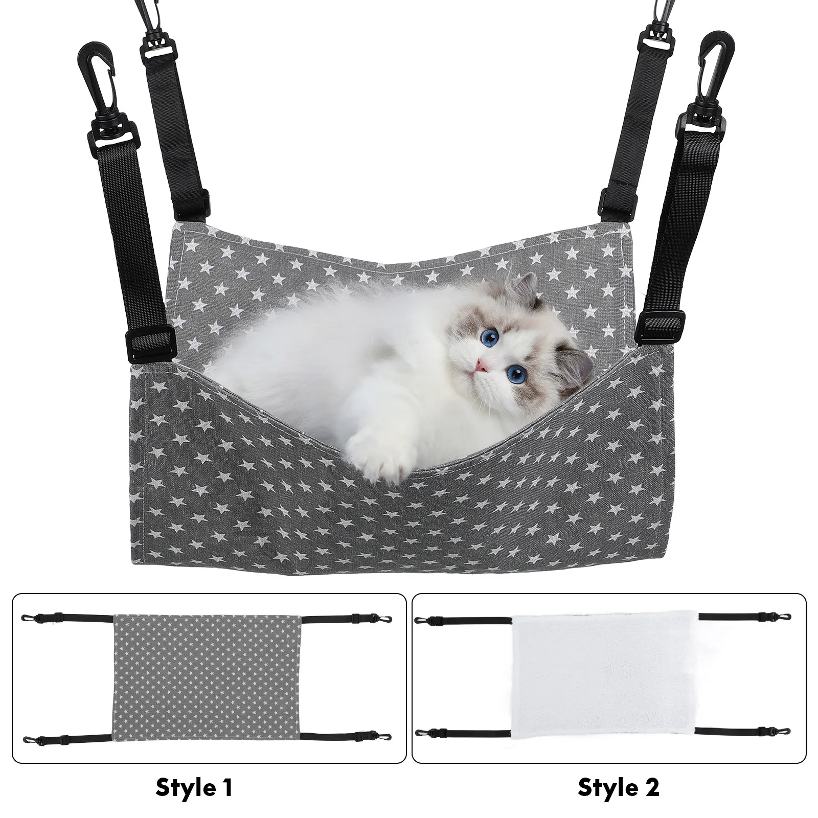 2 Pezzi Amaca per Gatti Regolabile, Letto Sospeso da Interno, Altalena per Gatti, Cuccia Reversibile per Animali Domestici, Accessorio per Gabbia, Amaca per Gattini e Cuccioli