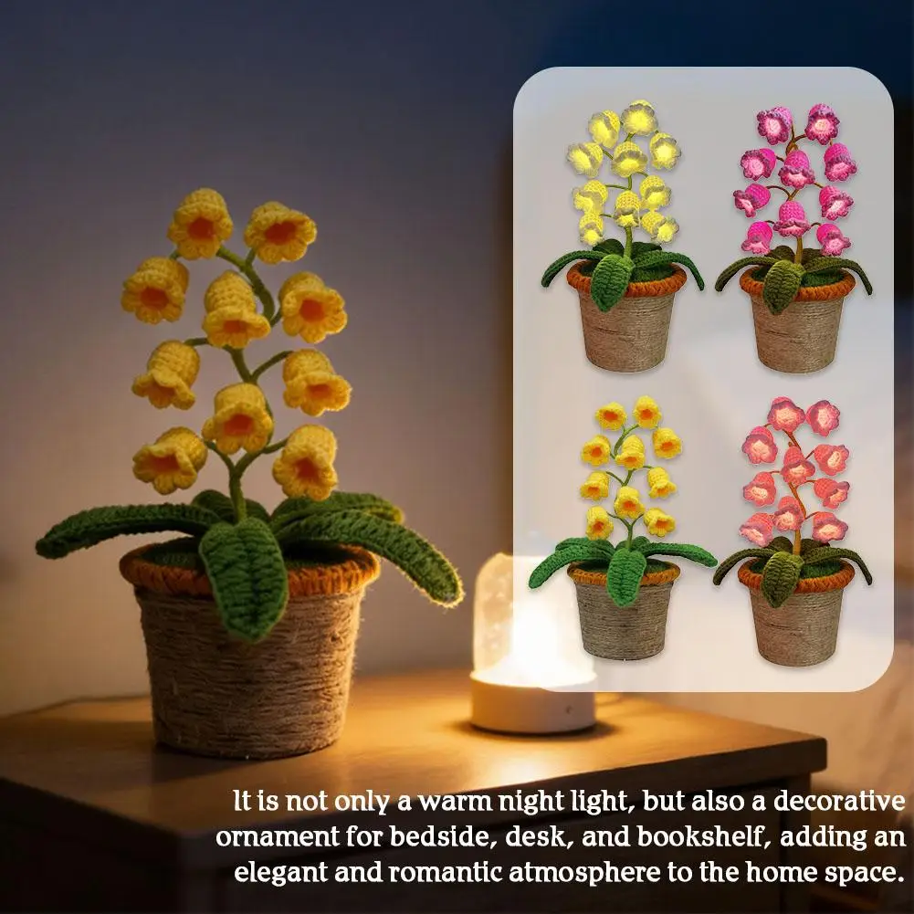 Lampada Decorativa LED a Forma di Orchidea in Vaso, Luce Notturna Artigianale all'Uncinetto per Camera da Letto e Scrivania, Vaso Luminoso Romantico per Arredamento Casa