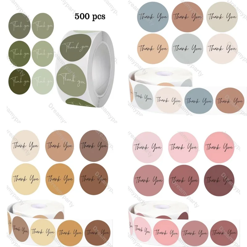 1 rotolo di 500 adesivi di ringraziamento, adesivi per imballaggi di lusso, adesivi rotondi, adesivi per bomboniere per addio al nubilato, adesivi colorati retrò Deco