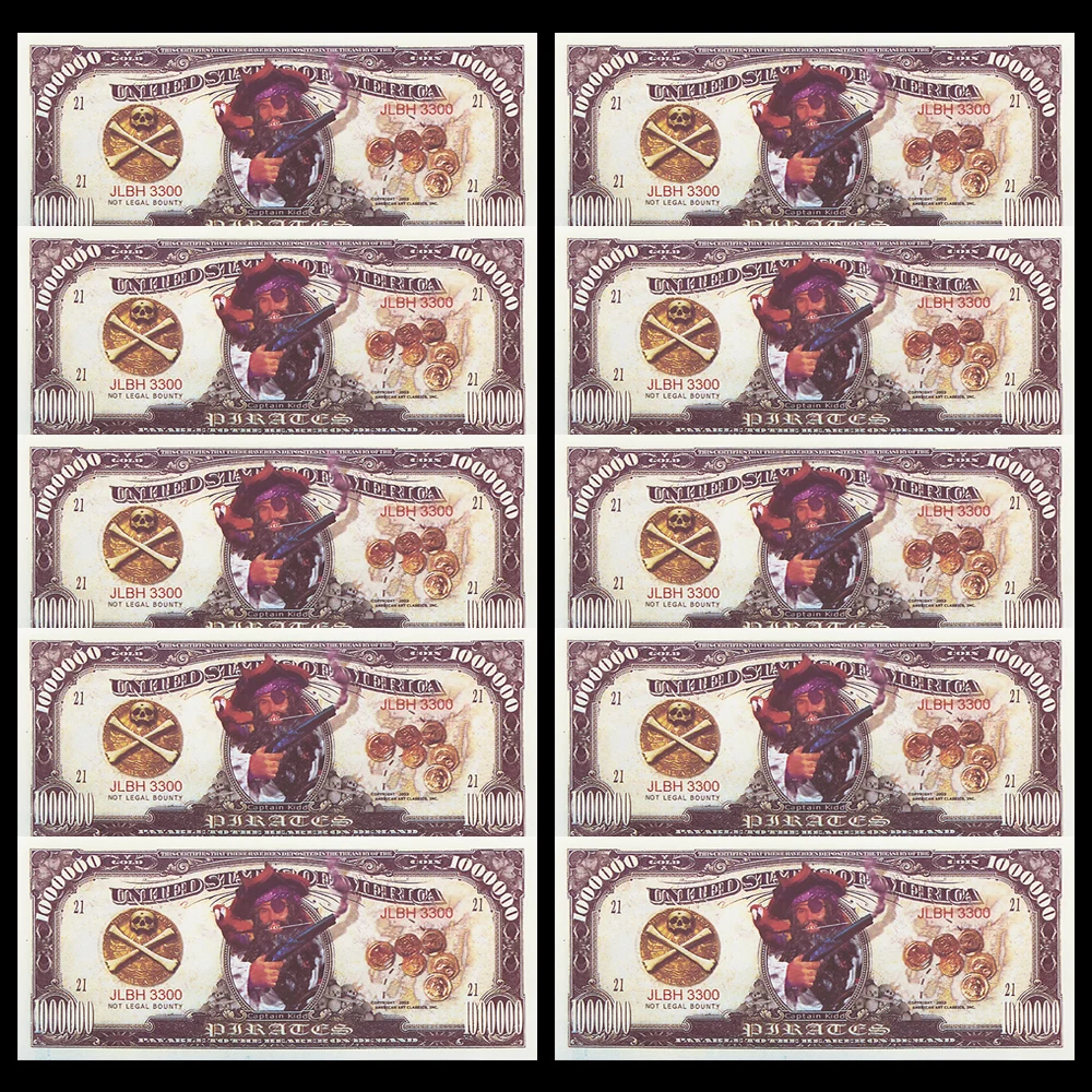 Nota di banconote da 1 milione di doploni d'oro a tema pirata, biglietto da collezione Capitan Kidd con design pirata e citazione "Yo Ho".