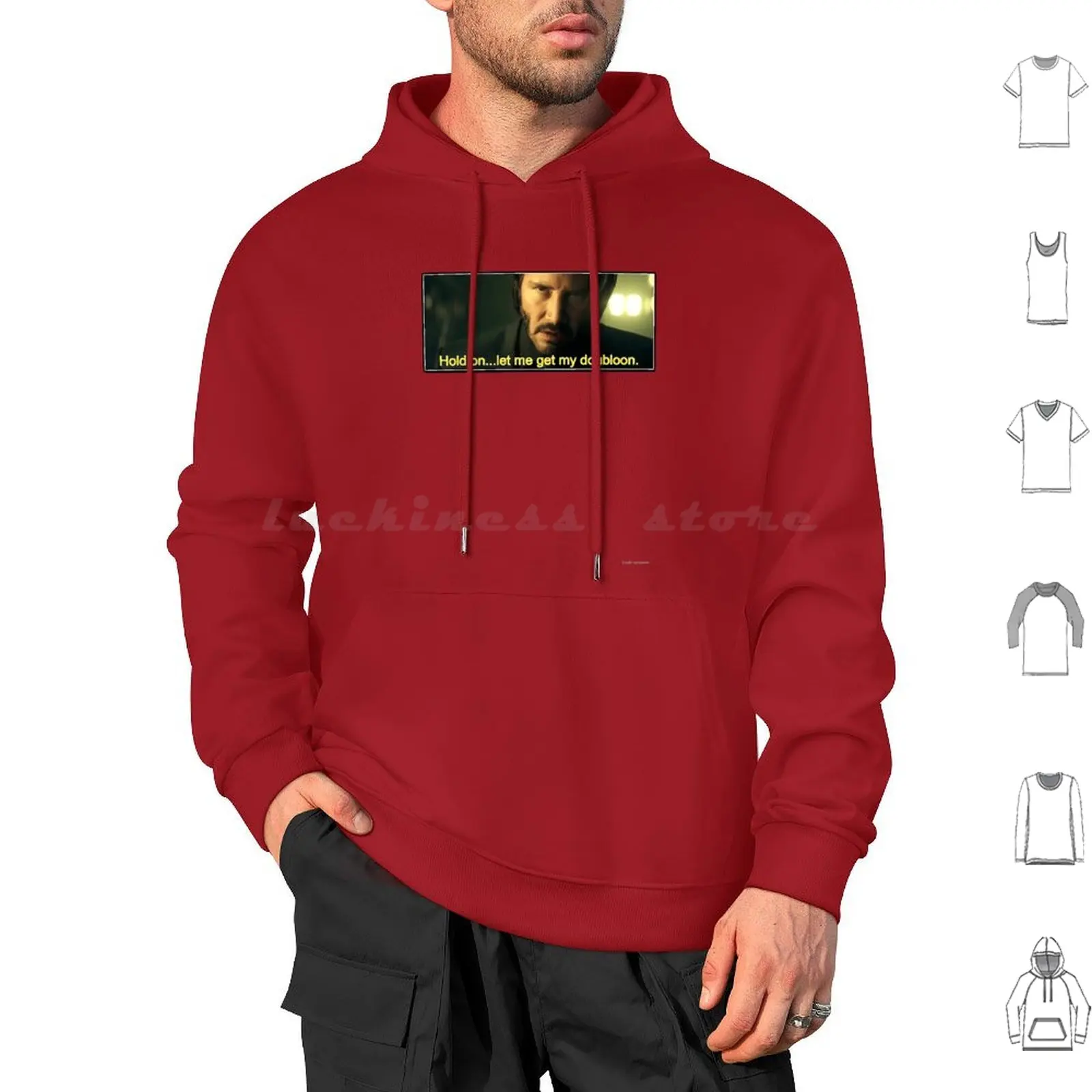 Doubloon Haver Felpa con cappuccio in cotone a maniche lunghe John Action Hero Movie Retro Indie Surreal Divertente Meme Monete Valuta Pirata Wick