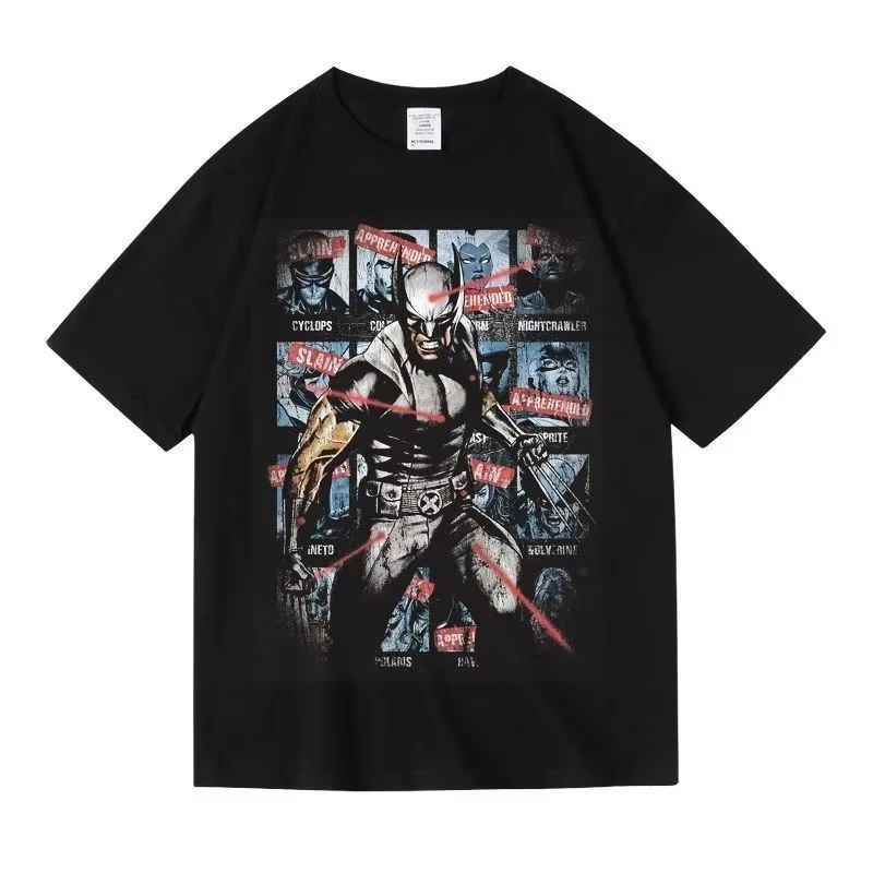 Maglietta in cotone con stampa grafica Marvel Wolverine X-Men Supereroi, T-shirt casual da uomo a maniche corte, Streetwear, T-shirt da uomo a tema fumetto