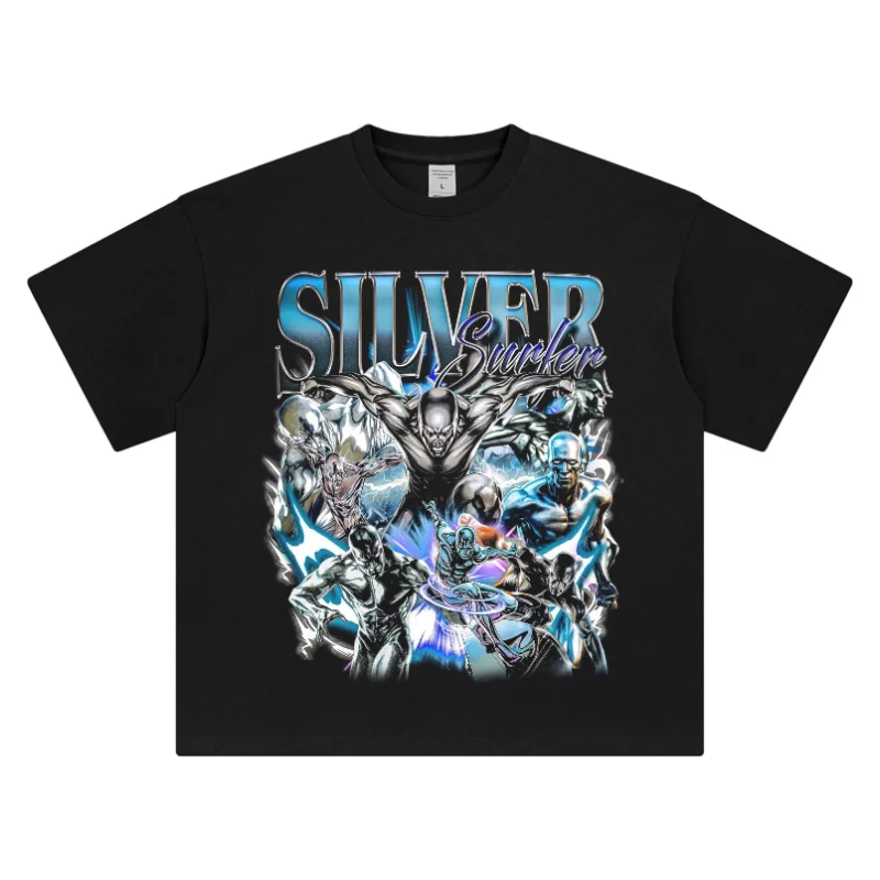 Marvel 2026CVLA Marvel The Fantastic Four Silver Surfer T-shirt stampata grafica unisex manica corta rilassata taglie forti