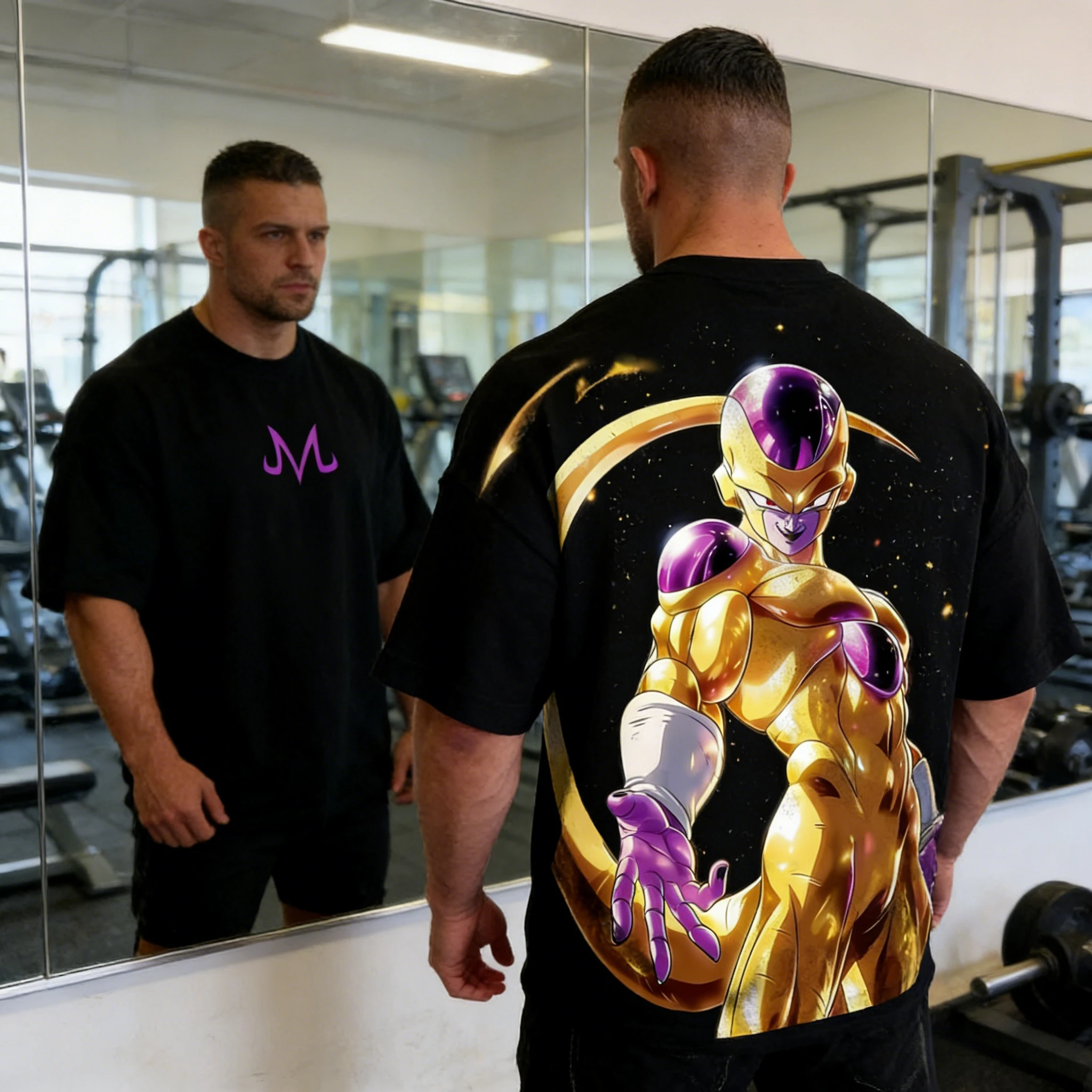 T-shirt Oversize Stampata in Puro Cotone Stile Cosmico Dragon Ball Frieza Golden Form Estate 2026 per Adulti e Bambini Y2K