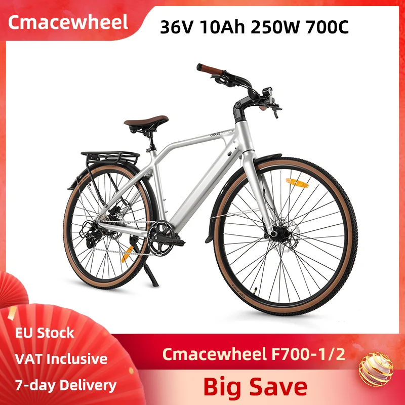 Cmacewheel F700-1 F700-2 Bici elettrica 36V 10Ah 700*38C Pneumatici sottili 360Wh 8 velocità Leggero City E-Bike Freno a disco idraulico
